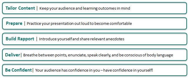 Remember these five tips to help you deliver a successful presentation in any setting: