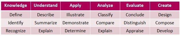 - Action Oriented: Incorporate action verbs; identify what action the learner must perform